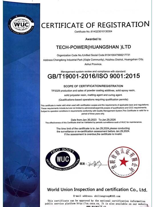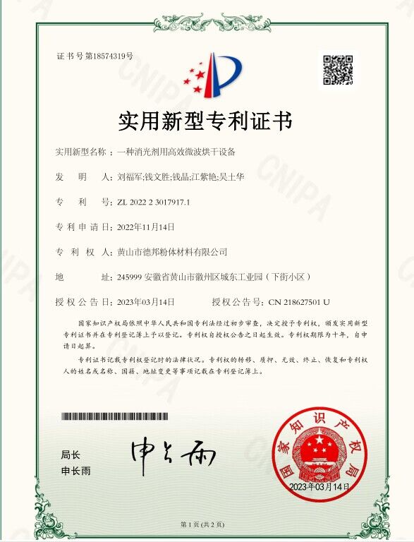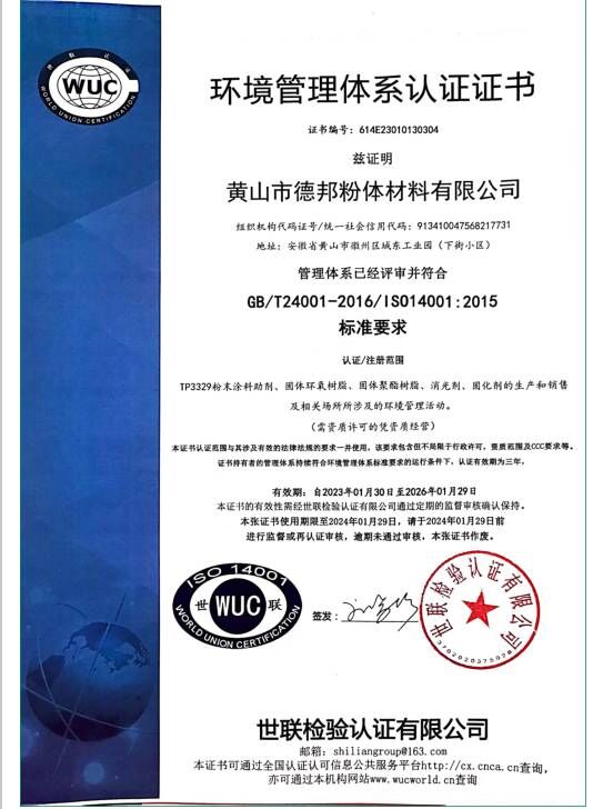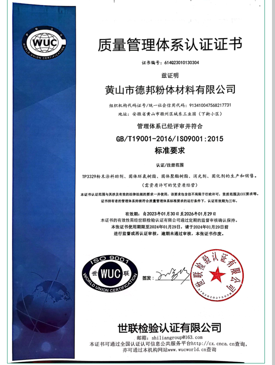 - ? 黃山市德邦粉體材料有限公司,成立于2003年,是一家專業生產粉末涂料固化劑及各類助劑的生產商。公司坐落于黃山市徽州區城東工業園區,擁有27000平方米的現代化廠房和先進的研發中心及質量檢驗中心。公司致力于新型粉末涂料助劑的研發、生產和銷售,其產品廣泛應用于粉末涂料、油墨、醫藥中間體等領域。主營產品共包含9大系列,涵蓋了50種以上的粉末涂料添加劑,例如啞光固化劑、消光劑、流平劑、固化促進劑、紋理劑、蠟改性劑電荷增強劑,以及其他特殊功能性添加劑等。總年產量可達到1萬噸。